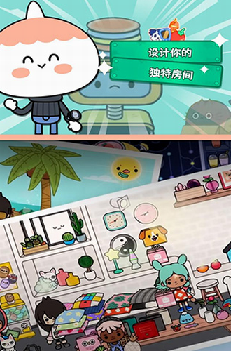 (a).自由化的托卡世界,各种各样的卡通的可爱的小角色都能够让玩家来自由扮演。