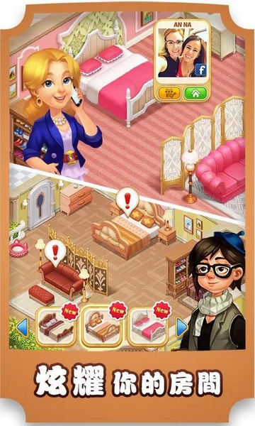 (a).解锁隐藏区域以获得奖励、利用新家具和有趣装饰来改造每个房间。
