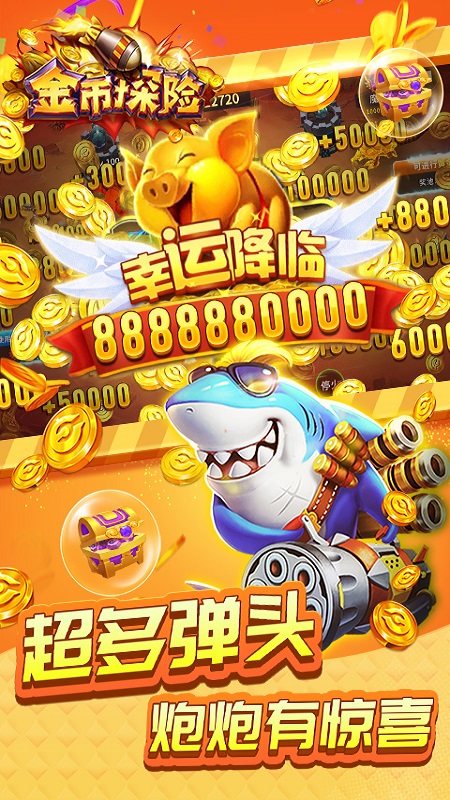 金币探险捕鱼游戏是一款创新多样的捕鱼游戏,趣味的捕鱼场景,多姿多彩的玩法,让每一位玩家都能时时刻刻的体验到最酷炫刺激的捕鱼游戏。百分百真实联网捕鱼,超级多的鱼boss,接连登场,随时随地体验万倍暴击的乐趣。