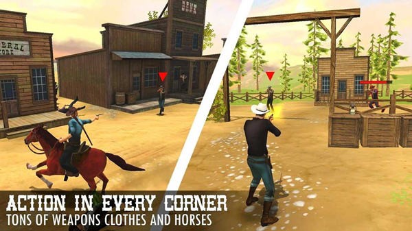 1.最精彩的枪战对抗在这里开始了,你将成为一名牛仔,在这里尽情的展开冒险,可玩性很高。