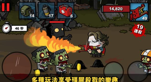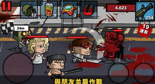 体验流畅的虚拟键盘操作和卡通横版打僵尸玩法。