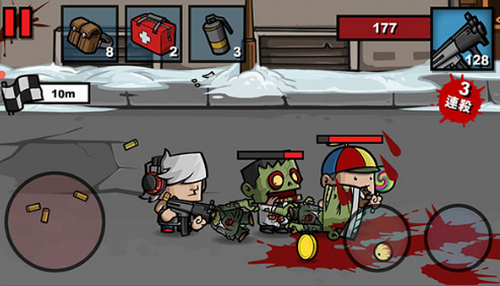 (e).玩家控制人物杀死僵尸的数量,从而完成任务,可以说简单,但是后期比较难。