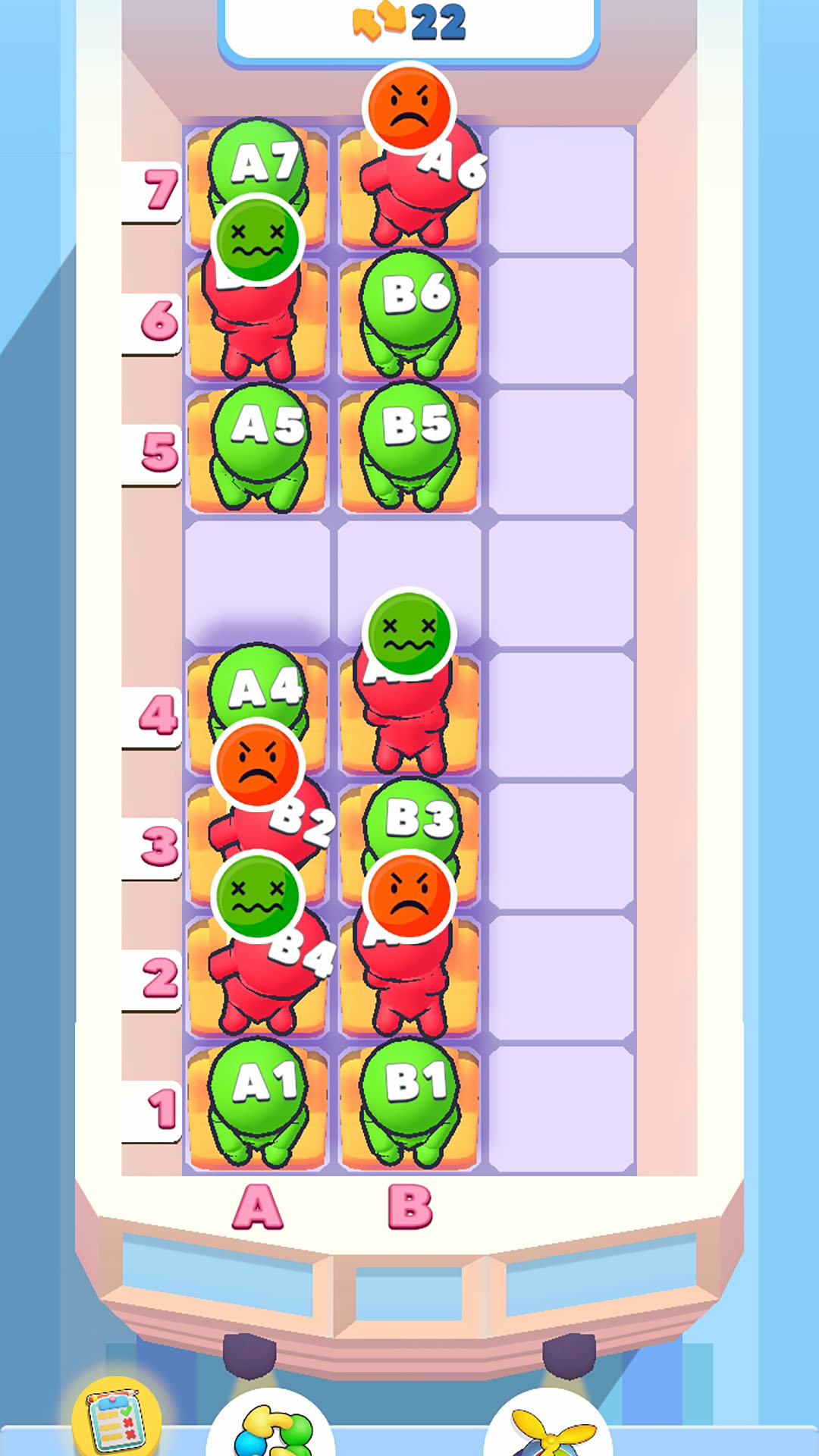 快来排排坐是一款令人着迷的益智游戏,将座位安排的策略巧妙融入解谜体验中。精心设计的关卡背后隐藏着独特而富有创意的谜题,适合各个年龄段的玩家。通过直观的拖拽操作,让每个人都舒适就座,满足所有乘客的要求。