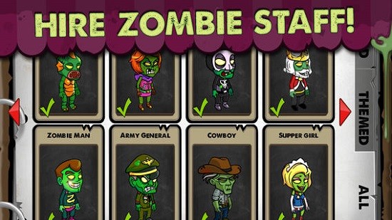 游戏开始玩家将拥有一个咖啡厅,由于没有工作人员,您必须吸引顾客加入并使用一种化合物将他们变成僵尸。只需拥有一个僵尸服务员,您的咖啡厅就可以 开张揽客啦。然而,周边激烈的竞争让你的咖啡屋举步维艰,所以当您认为合适的时候,派出您的僵尸军团去把周围的餐厅消灭掉。怎么消灭?吃了他们 。僵尸咖啡厅里面的大多数行动需要花费一些时间,如研究新的配方和制作一批新鲜的GRUB(全部都有恐怖的名字),以服务不知情的公众。你可以通过购买 一些道具来加速你在僵尸烹饪行业的发展。