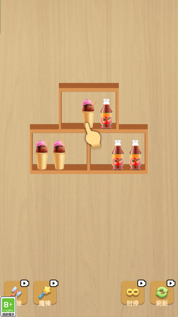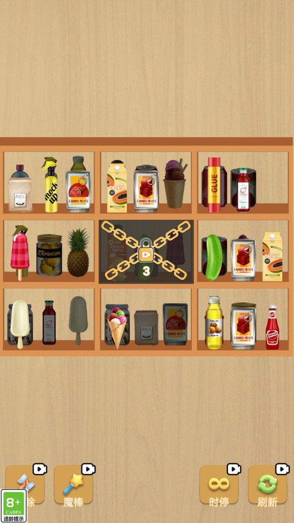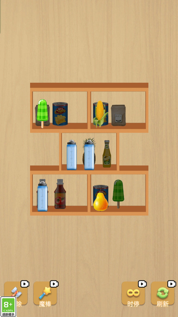 b.玩家需通过滑动屏幕上的物品,将相同物品排列成行进行消除。