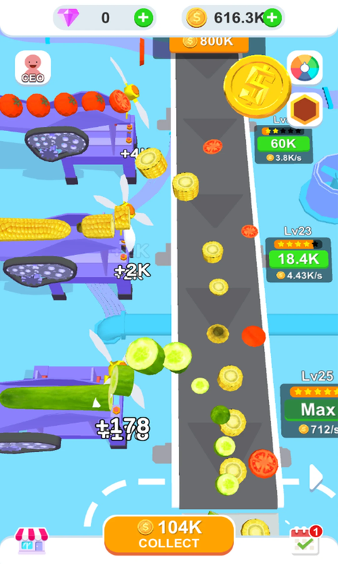 《闲置切片厂》是一款休闲经营类游戏,带领玩家经营一家切片工厂。在游戏中,你可以打造多条生产线,切割各种蔬菜,并将其打包出售。通过招募工人,完成订单,不断积累财富,将你的小工厂发展为蔬菜王国。