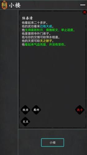 武林豪侠传是一款文字类修真模拟器,这是一款非常好玩的国风武侠类游戏,游戏中为你准备了正统的武侠小说设定,你将扮演初出茅庐的侠客,来到世界中闯荡,选择不同的武学来进行学习,修炼你的内力,提升武学能力,同时我们可以选择加入不同的门派,正派,邪派,中立等多种门派可以选择加入,还有专属的武学技能可以学习,游戏中剧情十分丰富,有趣的故事,江湖等你探索,还有高手等你来切磋对战,行走江湖,匡扶正义,成为邪道魔神,逆天改命,玩法多多,游戏采用文字类型推进,玩法操作简单,快来试试吧。
