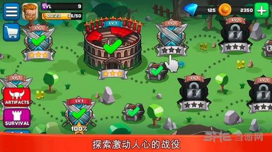 (2).小小角斗士丰富的时装系统,花费一定的钻石既可以解锁大量的游戏服装,百变角斗士就是你。