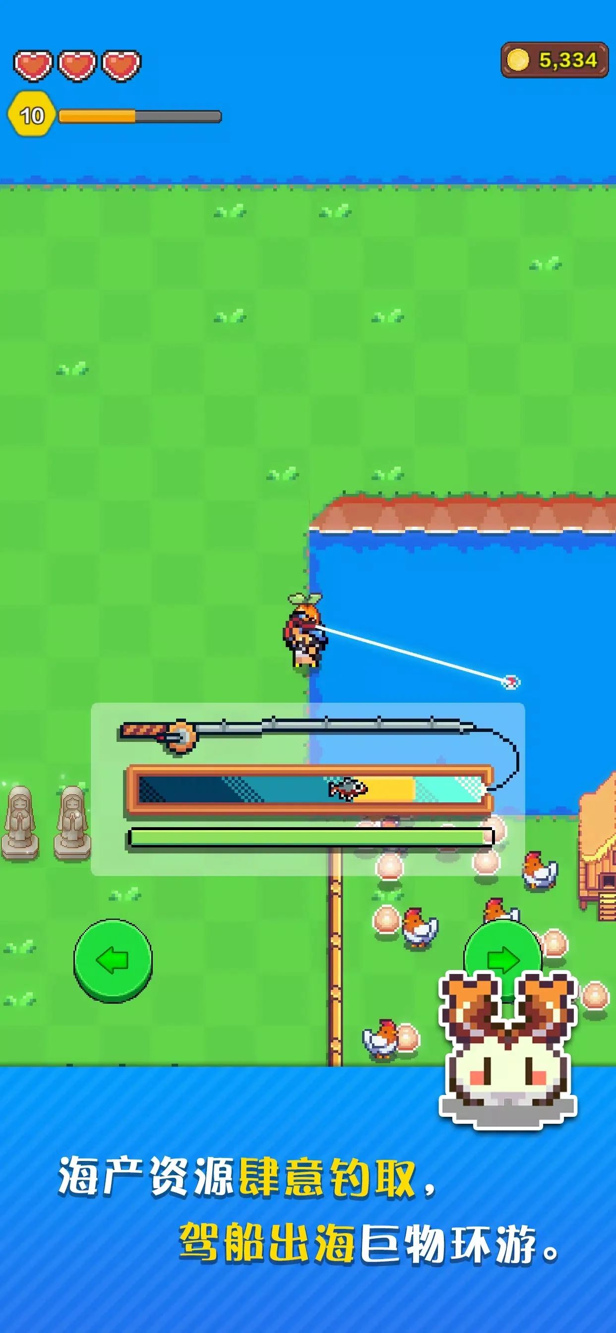 技巧8,目前npc只有三个,左下角一个换装npc,右上角两个npc分别卖鱼卖矿石,不过都没必要卖,能过去的时候基本上都不缺钱了,把资源摆好坐着钓鱼刷等级即可。另外回家可以回血。