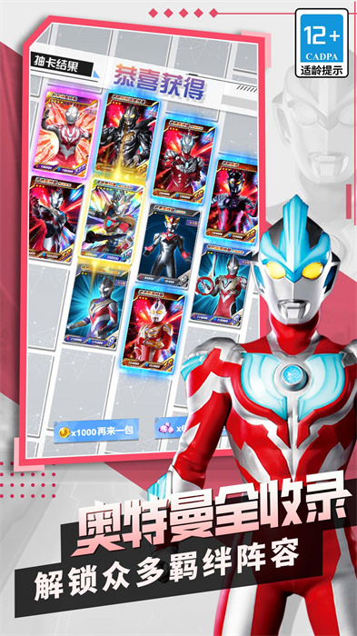 游戏内还需要去进行抽卡牌来抽取稀有的奥特战士卡牌,观看视频解锁超强属性战力卡牌。