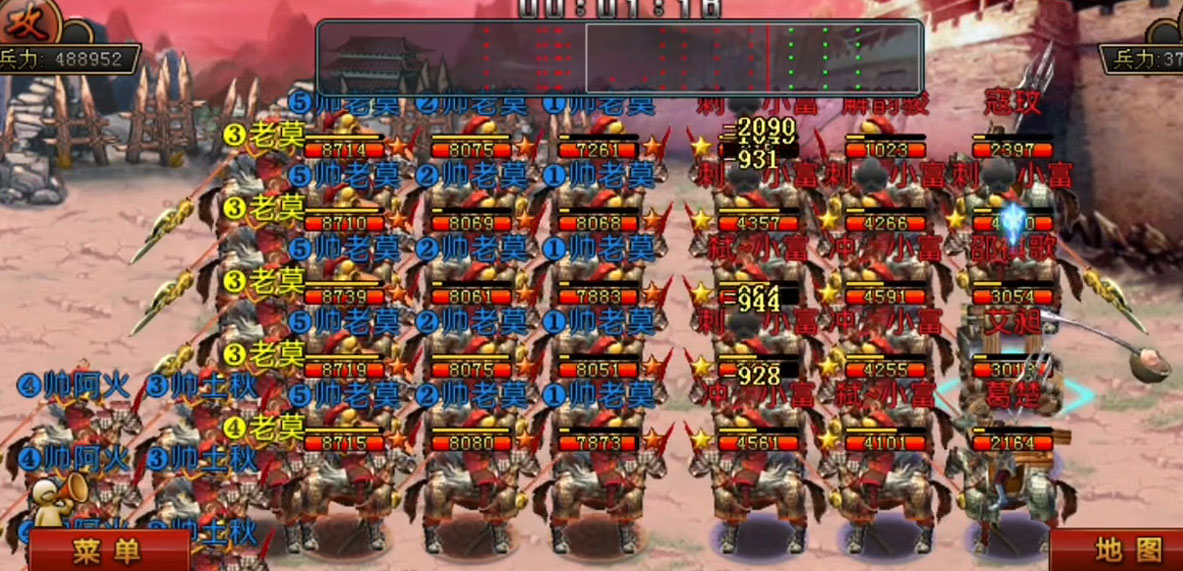 额,收徒花了十几分钟,当然,收徒时也不能不做别的,此时人口1500了,开三十级礼包,有个招贤令,刷了招几个将,把将招满,做将领任务得资造兵,此时,可以再秒100重步,150小车了,目前兵力一共就200重步,300小车,分四将带着杀黄,在第二封的书院把步科秒到2级,找寻全弓,六,七黄,找到后可以用加速秒进入。