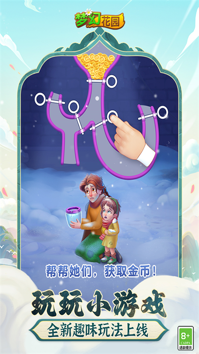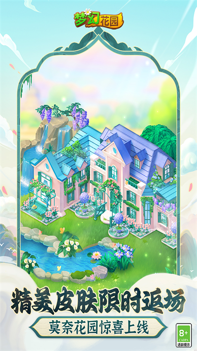 梦幻花园游戏带来趣味的休闲三消+模拟经营玩法,数千个独特的关卡,内含闯消除关卡、整修并装饰花园、体验丰富的故事情节等等特殊玩法,自由打造你的梦想花园!