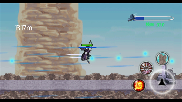 4、当玩家释放了长时间永驻的忍术,则右上方会出现相对应的进度读条,玩家需要注意在忍术时间结束后,避免撞到石头。
