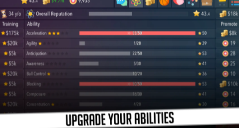 1.通过比赛获得经验,升级球员的技能,以适应不同的游戏风格,无论是进攻得分还是防守拦截。