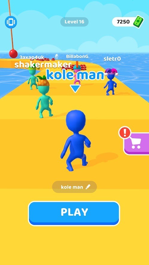 1、控制你的角色进行跑酷,获得第一名就能够进行下一关的比赛。