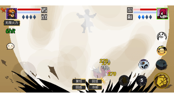 像素火影改版是一款火影角色对战的手机游戏,此作为低端机用户开发的低配版,可以让适配性能较低的设备,稳定流畅运行游戏。玩家可以在游戏中选择火影角色,参与对战,不同的角色能够给玩家带来不同的技能连招,需要玩家熟练掌握角色的技能。