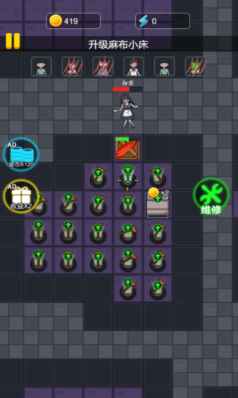 1.通过睡觉发育的方式赚取到更多的金币,将金币购买各种不同的武器装备,来防御更多敌人的进攻。