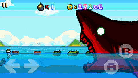 你沐浴在阳光明媚的海滩,突然鲨鱼向你游过来.快速躲避鲨鱼的攻击,千万不要成为鲨鱼的食物哦!