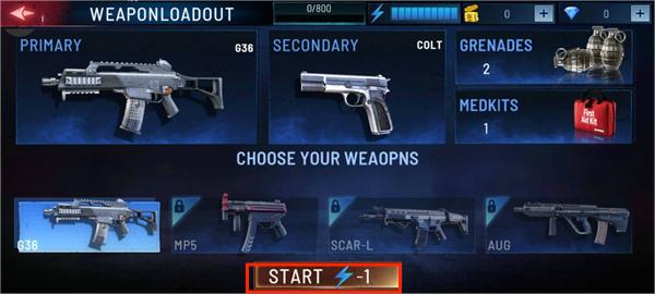 5、选择好枪支,点击START消耗一点蓝进入游戏;