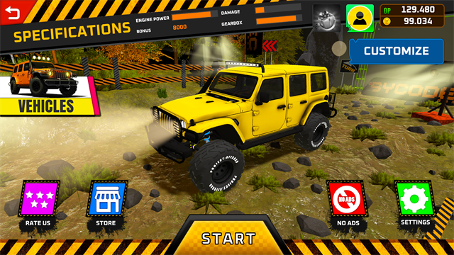 4、通过完成关卡获得奖励,并在游戏中使用奖励购买新的越野车。