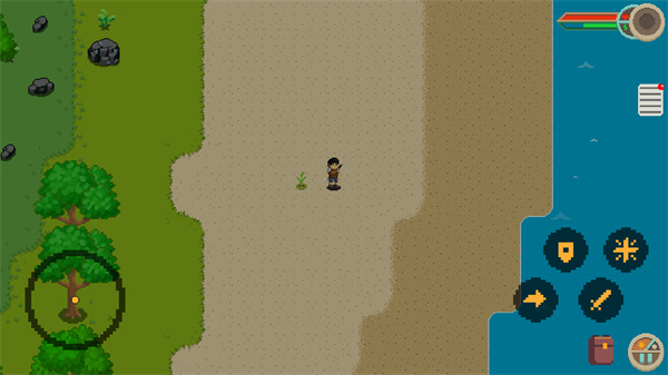 7、尝试用剑收集一些物资。收获到的物资可以建造庇护所,填饱肚子,或是修好岸边的烂船…