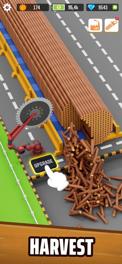 5、 玩家不断累计财富,完成任务并扩大木材厂地图进度。