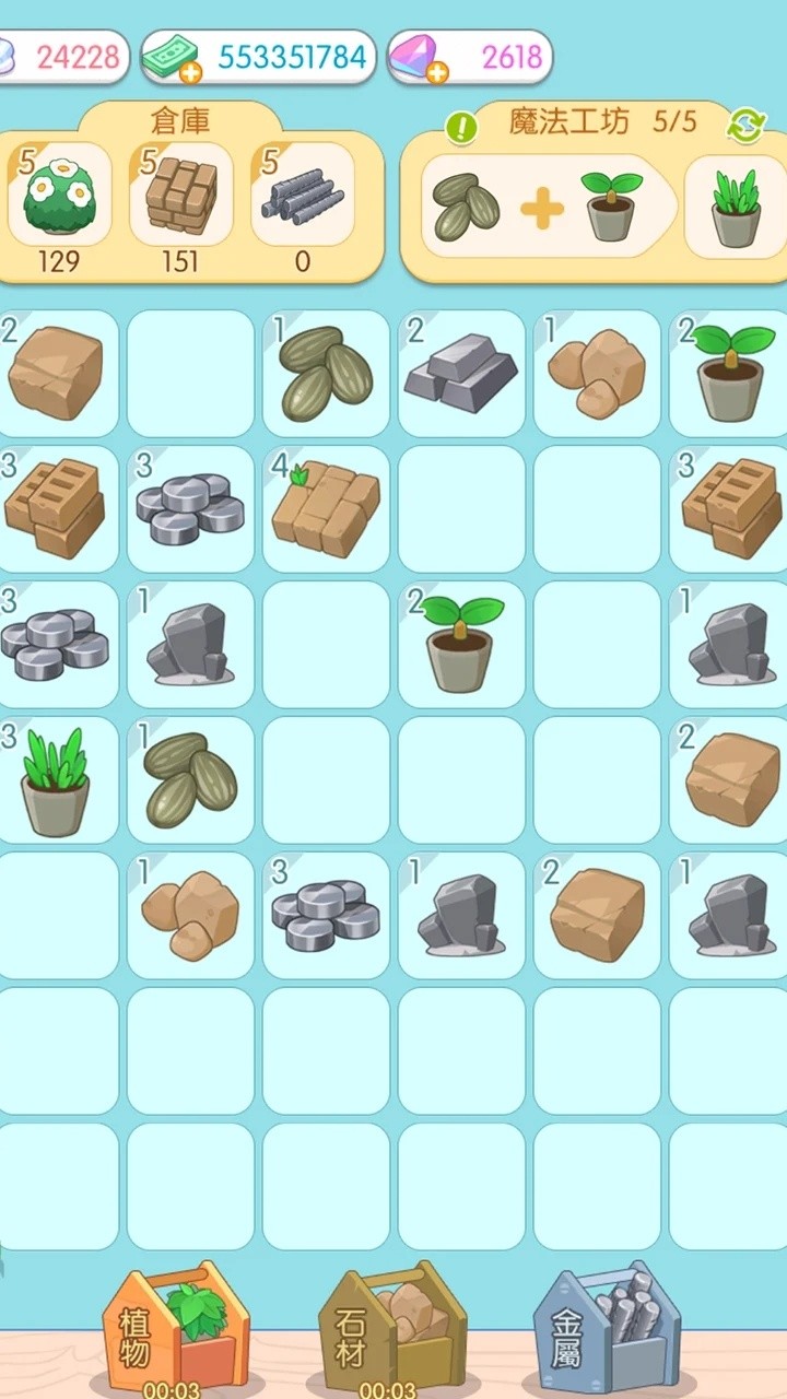 通过合成建筑材料来完成建筑的升级,享受更多收益。