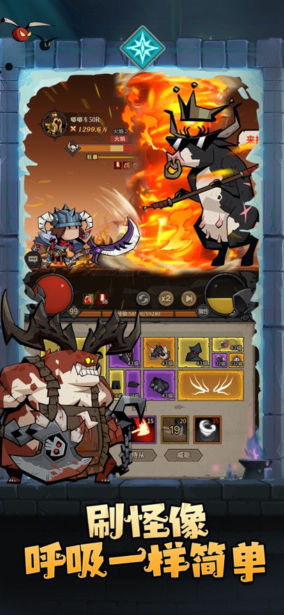 1.放置模式结合了强烈的冲击感,在屏幕上有华丽的技能效果和爆炸伤害数字。