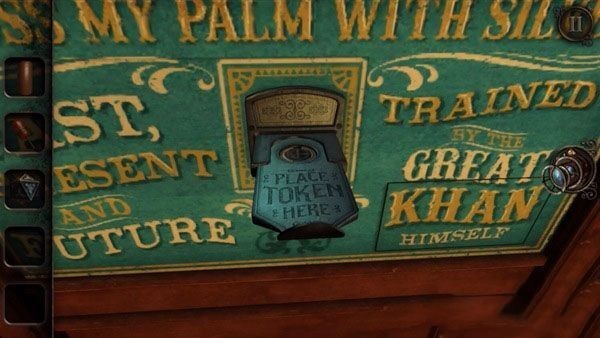 2、下楼,在这个女巫的占卜机拉开下方的架子,拿到一个圆轮道具,其实它是一把钥匙。