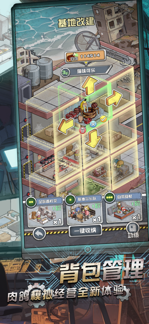 背包整理玩法+模拟经营+Roguelike的新姿势融合,以不同于初代的全新视角带来全新体验,保留简单爽快的游戏玩法,秉承梗上缝游戏的制作宗旨,让你在末日也能轻松躺平赚鸡腿!