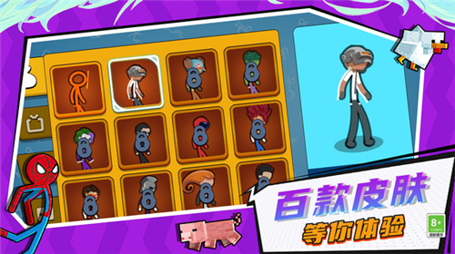 A.参加火柴人的竞技场,进行多人的乱斗玩法,实现大乱斗中成为笑到最后