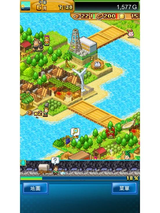 游戏采用的操作方式也是最为传统的开罗经营游戏的按键触控选择,相信很多玩过此类游戏的玩家都知道吧,通过菜单选择来建设各种基地建筑物,开拓领土,寻找各种资源补充自己的经济实力,不断的推进岛屿的文明进程。游戏的操作算是中规中矩,没有新颖的地方,然玩家们能很轻松的就上手。