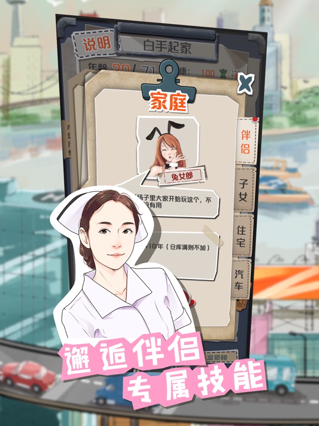 花钱:点击消费品可购买,不同消费品对名声和健康值的影响不同