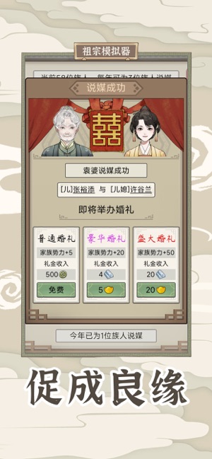 4. 牵线姻缘 — 在这里你将有机会促成家族内众多小辈的姻缘,当在遇到并非善类的追求者时,你也有权利将其拒之门外,用上帝视角为他们好好把关。