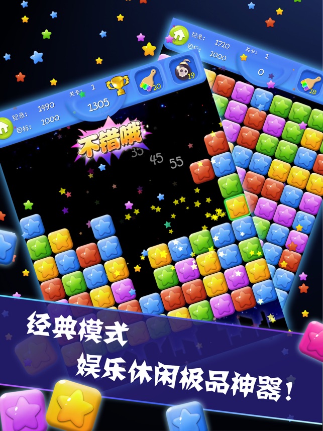 经典模式:点击相邻相同颜色的星星就可以消除得分,超简单娱乐休闲极品!
