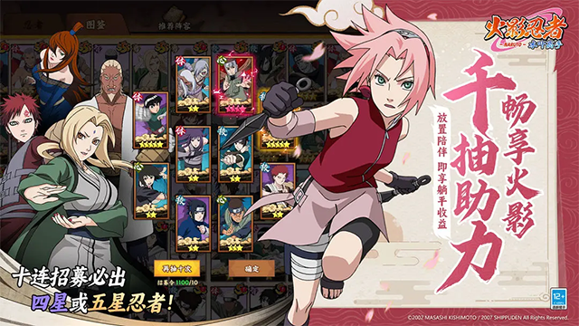 竹内顺子(鸣人)、杉山纪彰(佐助)等53位知名声优倾情加盟,为游戏中的特定角色配音,再度演绎那些耳熟能详的经典角色。让每一次对话、每一场战斗都充满沉浸式的听觉享受。无论是悠闲的放置时光,还是紧张刺激的战斗瞬间,都能让你仿佛置身于真实的火影世界,声临其境地感受忍者的热血与激情。