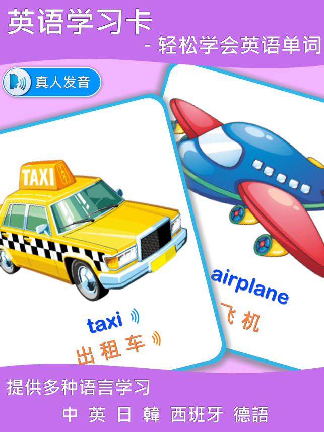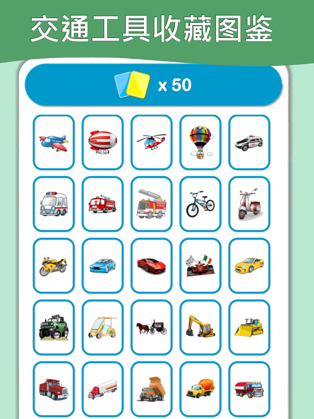 这是一个富含教育性质的互动学习卡,超过50张有趣的图片与声音,配合小游戏,轻松认识各种交通工具!