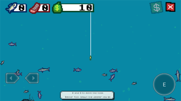 3. 通过方向键控制鱼钩移动,撞击鱼类至伤害值满后捕获。