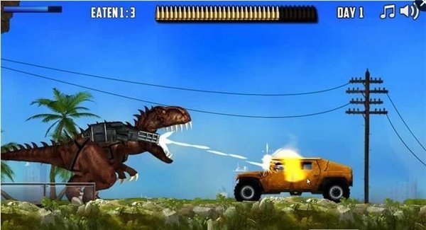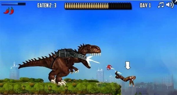 1.简单而粗糙的游戏模式。在游戏中,你将变成一只觉醒的霸王龙,冲向关卡的终点。