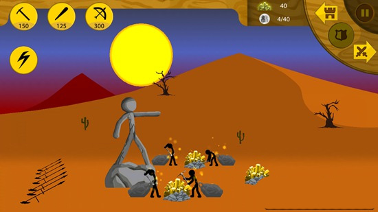 这样我们就能快速获得足够多的矿石,用来召唤更多攻击性火柴人。