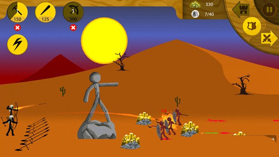有足够的矿石,就能点击攻击类的火柴人,派遣它们去摧毁敌人的基地。