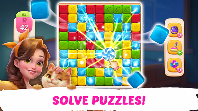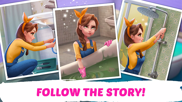 每完成一关三消谜题即可获得“星星”,用于解锁装修步骤(例如清理大厅、粉刷墙面、添置家具等)。
