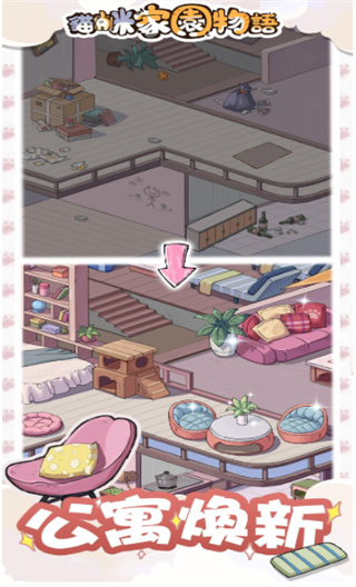 在玩家们进入游戏中后,只需要每天上线摸摸猫啊喂个饭啊然后再装饰一下猫窝再去逛逛家具店做做任务,不知不觉一天心情都变好了偶尔还能解锁神秘剧情和彩蛋玩法,收集控和猫奴们千万别错过快来一起打造各位玩家们的喵星人小宇宙吧!