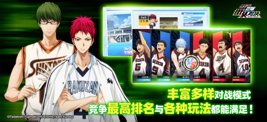 黑子的篮球:街头对决手游是由日本热门篮球动画《黑子的篮球》改编的即时篮球对抗游戏