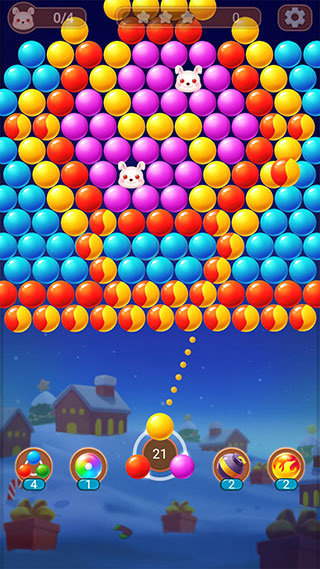 进入游戏后,各位玩家只需要控制发射方向把泡泡射向相同颜色的泡泡堆三颗以上就能完成一次消除,关卡里还会有障碍限定步数特殊泡泡等小机制哦要想拿高分可得动点脑筋,记得合理使用炸弹泡泡彩虹泡泡等道具轻松突破难关收获满满的成就感啊,想要在碎片时间中打发时间的玩家们这一款游戏真的是非常的适合啊。