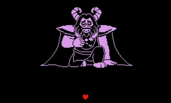 在与毁灭之家的无数怪物交朋友后,Chara 在与疯狂假人发生冲突后前往毁灭之家,仍然在为人类与他们互动的方式寻求报复。他们最终到达了 Asgore 的家,Asgore 允许他们永远和他住在一起。但当 Chara 试图同意时,他们发现他们的话被离开的愿望所覆盖。这导致 Asgore 攻击 Chara,试图测试他们,看看 Chara 能否在未来生存下来。Chara 向 Asgore 透露了他们克服了什么才到达他的家,以此说服他们不会有事的。战斗结束后,他们再次遇到了 Temmie,Temmie 透露自己更像他们自己。在七个 Temmie 攻击人类之前,一朵名为 Flowey 的会说话的金色花朵现身并赶走了 Temmie。然后,它表示希望帮助 Chara,然后继续前往星尘岛。