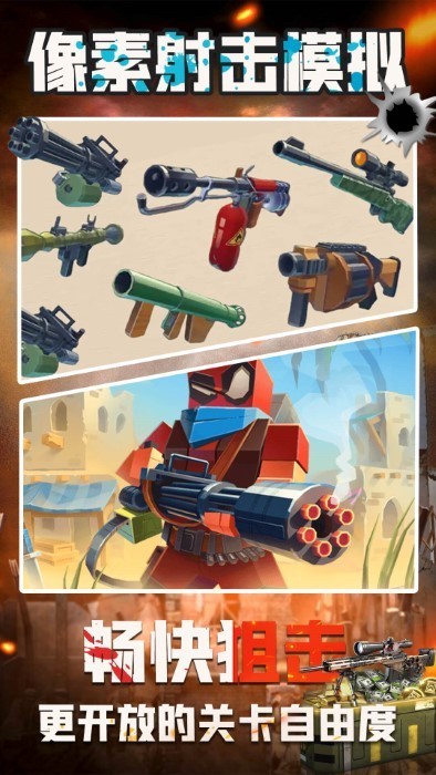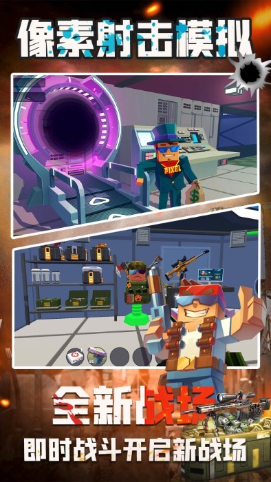 像素射击模拟最新版本游戏是一款以自由创造与热血战斗为核心的开放世界射击游戏,玩家将化身像素世界的全能战士,在随机生成的沙盒地图中展开建造、生存与竞技的多元冒险。游戏融合了高自由度的方块编辑系统与快节奏的射击玩法,玩家既能用像素块搭建堡垒、陷阱或巨型机甲,也能手持各类创意武器在动态战场上与敌人展开激烈对抗。像素射击模拟最新版本游戏不仅拥有丰富的地图与任务系统,还提供了多人模式与联机合作功能,让你在战斗中体验到真正的生存与射击乐趣。