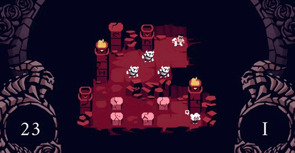 Helltaker是一款美漫风格的地牢冒险RPG游戏,游戏玩法主要是俯视角推箱子,配合一些奇奇怪怪的机制与解密,让这款游戏推箱子的可玩性上了一个档次,在解密的最后会与各种白毛恶魔对话,回答正确就可以收为后宫,回答错误的话嘛会知道什么是恶魔。游戏中玩家将扮演一名猛男,穿过地狱中的重重机关,并在地狱中化身把妹高手俘获所有少女的心。而随着游戏进度的深入,谜题的难度也会逐渐提升,出现新的机制,按理来说需要玩家发挥聪明才智才能过关。