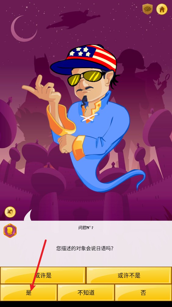3、精灵会通过不断的问问题来缩小范围,例如这里就缩小到了说日语的这个范围。