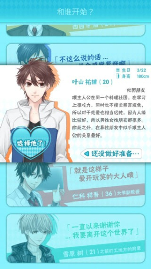 1.玩法还是简单的,与男主们的对话也不会过于烧脑,正常回复都可以提高亲密值的。